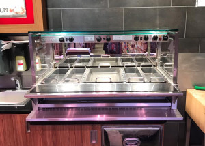 Wir von New Gastroline freuen uns, dass wir den Küchenbereich der Düne 74 neu gestalten und modernisieren durften. Hierfür haben wir die Fischbrötchen-Station mit maßgeschneiderten Edelstahl-Arbeitsflächen und -Möbeln versehen, seitdem ist die Arbeitsfläche größer, mit mehr Stauraum unterhalb. Für die Fischauslage kommen ab sofort attraktive Kubus-Kühlvitrinen aus dem Hause KBS zum Einsatz, denn der Kunde soll die appetitlichen Auslagen gut sehen können. Gebraten wird auf Geräten der Marke EKU. Komplettiert haben wir die auf einen Sockel gesetzte Kochstrecke mit einem SCC-XS von Rational. Im Hintergrund laufen Geschirrspülmaschinen vom Typ PT-M in Standard und Energy-Ausführung. Bei der kompletten Kältetechnik fiel die Wahl auf bewährte Geräte aus dem Hause CoolCompact, wie zentralgekühlte Kühlschränke, Tiefkühlschränke aber auch Kühltische, ein Schockfroster sowie ein Konfiskatkühler.
