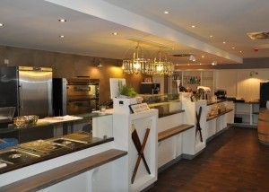 Im Unterbau sind Kühlschubladen der Fa. NordCap sowie Alto-Sham Warmhalteschubladen untergebracht. Die Freiräume sind in Hygieneausführung H2 mit abgerundeten Ecken ausgeführt. Ein zentrales Installationsfach ermöglicht den schnellen Zugriff auf jedes Gerät.