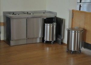 Die Aufgabe: Den Abfall trennen in einer Schülermensa. Hier muss alles sehr stabil, funktionell und übersichtlich zugehen. Es entstand der auf die Müllbehälter abgestimmte Sonderbau, komplett aus hochwertigem und nicht rostenden Edelstahl.